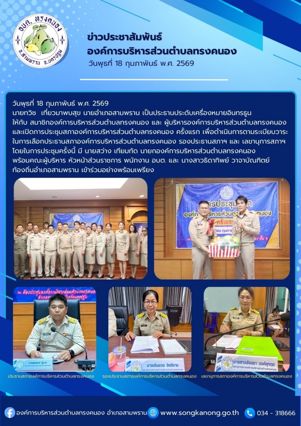 การประชุมสภาองค์การบริหารส่วนตำบลทรงคนอง ครั้งแรก 18 กุมภาพันธ์ 2569