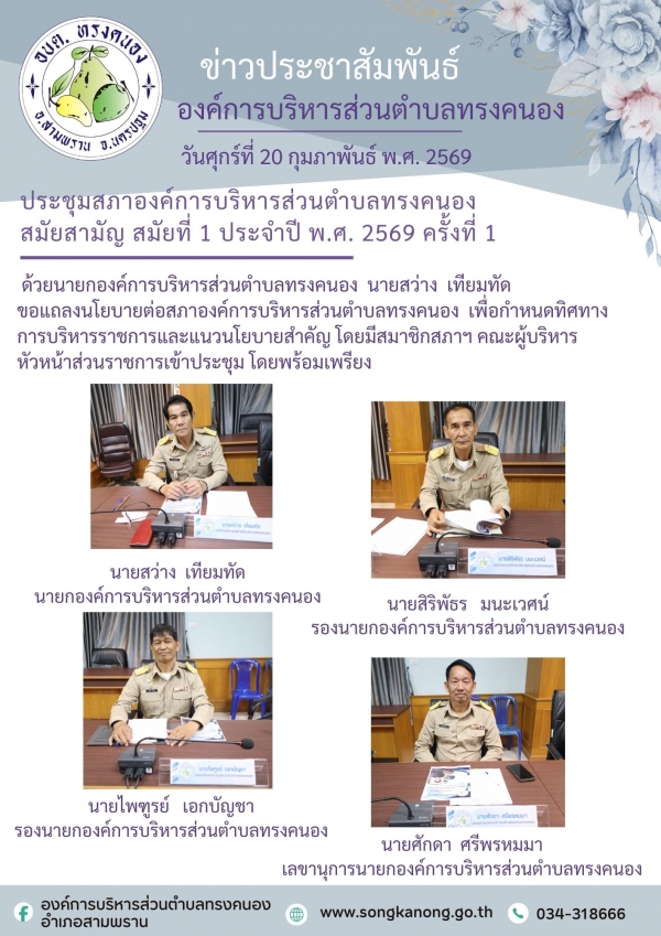 การประชุมสภาองค์การบริหารส่วนตำบลทรงคนอง มัยสามัญ สมัยที่ 1 ประจำปี พ.ศ. 2569 ครั้งที่ 1