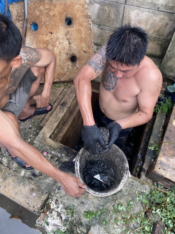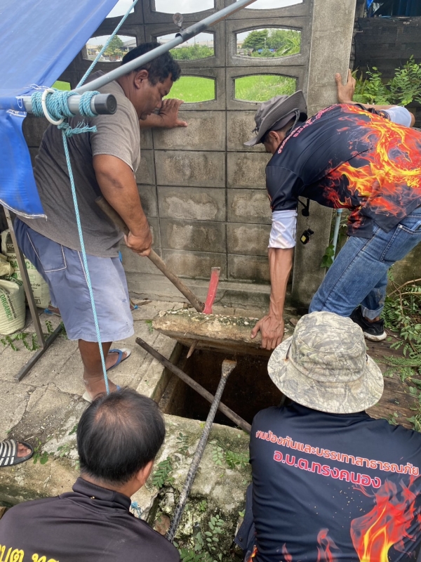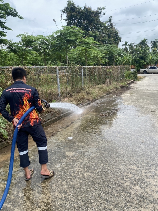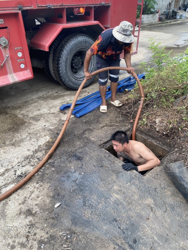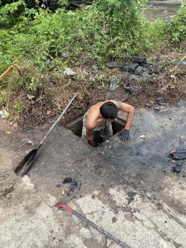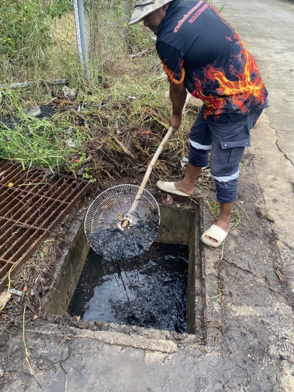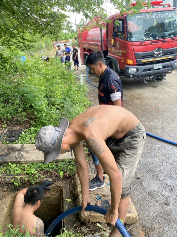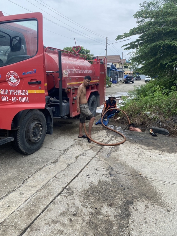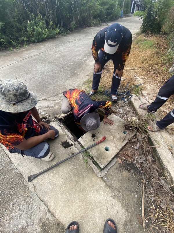 งานป้องกันและบรรเทาสาธารณภัย ร่วมกับกองช่าง ดำเนินการลอกท่อระบายน้ำทิ้ง บริเวณพื้นที่หมู่บ้านกวินทิพย์ หมู่ที่ 1