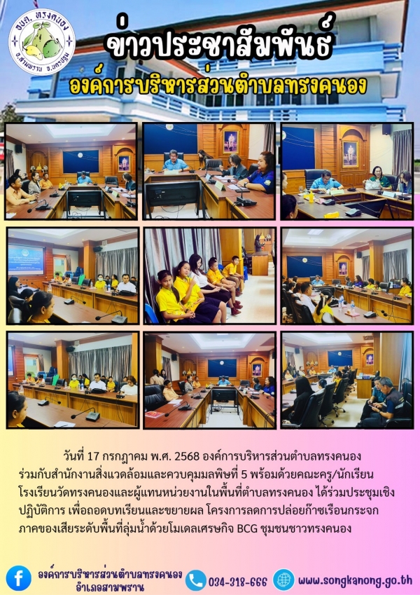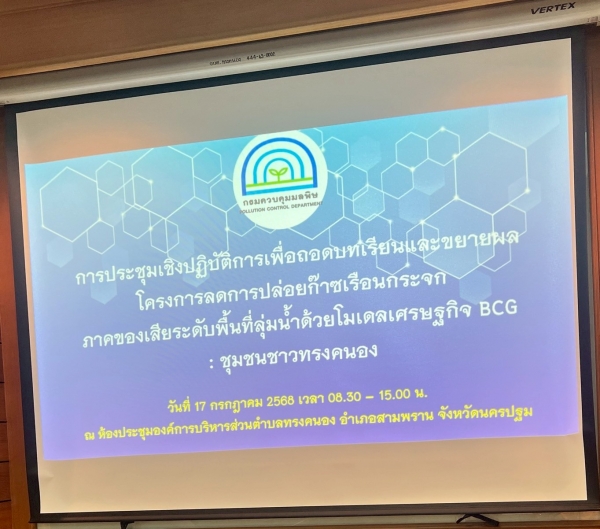 ประชุมเชิงปฏิบัติการเพื่อถอดบทเรียนและขยายผลโครงการลดการปล่อยก๊าซเรือนกระจกภาคของเสียระดับพื้นที่ลุ่มน้ำด้วยโมเดลเศรษฐกิจ BCG ชุมชนชาวทรงคนอง