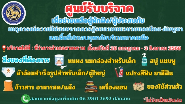 ขอเชิญร่วมบริจาคสิ่งของอุปโภคบริโภคเพื่อให้ความช่วยเหลือผู้พักพิง/ผู้ประสบภัยเหตุการณ์ความไม่สงบจากการสู้รบตามแนวชายแดนไทย - กัมพูชา และพื้นที่อุทกภัยภาคเหนือ