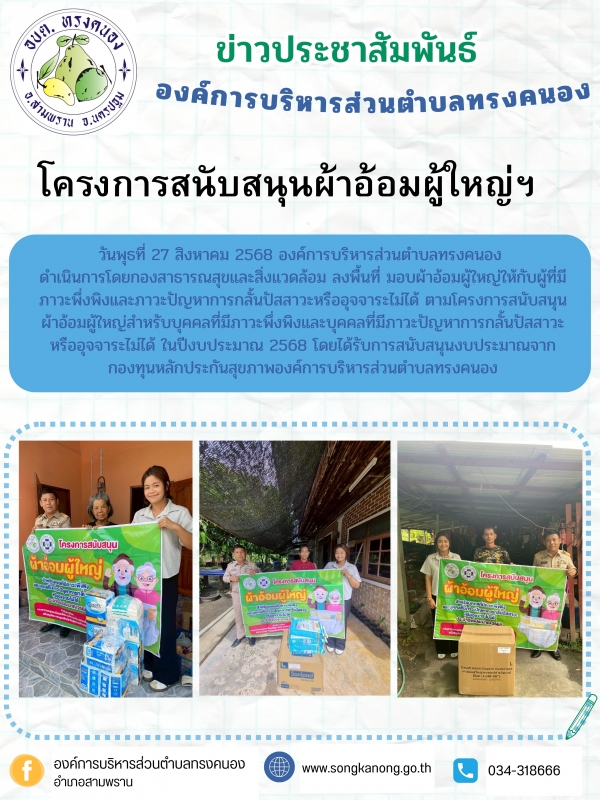 โครงการสนับสนุนผ้าอ้อมผู้ใหญ่สำหรับบุคคลที่มีภาวะพึ่งพิงและบุคคลที่มีภาวะปัญหาการกลั้นปัสสาวะหรืออุจจาระไม่ได้ ในปีงบประมาณ 2568 ครั้งที่ 10