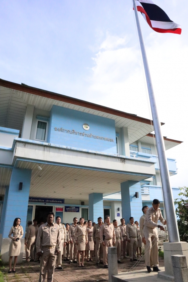 องค์การบริหารส่วนตำบลทรงคนอง ได้จัดกิจกรรม เคารพธงชาติและร้องเพลงชาติ
