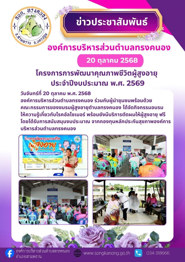กิจกรรม ชมรมผู้สูงอายุ วันจันทร์ที่ 20 ตุลาคม 2568