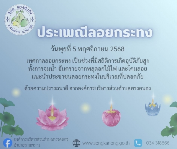 เนื่องใน ประเพณีวันลอยกระทง วันพุธที่ 5 พฤศจิกายน 2568