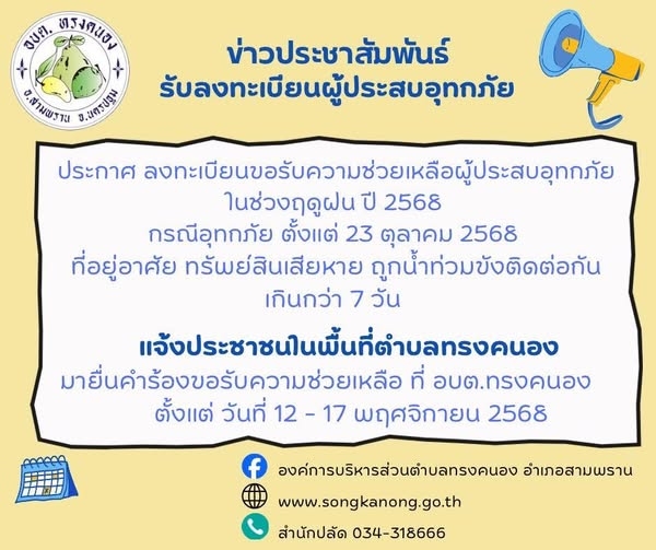 รับลงทะเบียนผู้ประสบุทกภัย ในช่วงฤดูฝน ปี 2568