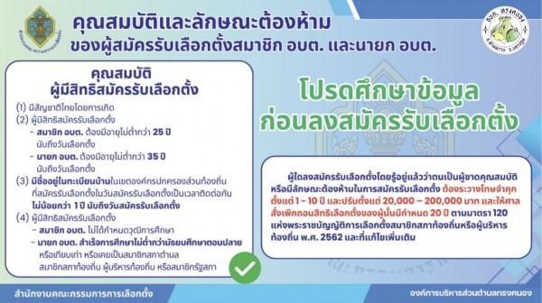 ตรวจสอบคุณสมบัติและลักษณะต้องห้ามก่อนลงสมัคร เพื่อป้องกันการเสียสิทธิในการลงสมัครรับเลือกตั้งตามกฎหมายกำหนด