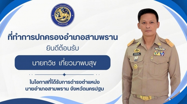 แสดงความยินดีกับ " นายทวิช เที่ยวมาพบสุข " ในโอกาสที่ได้รับตำแหน่ง นายอำเภอสามพราน