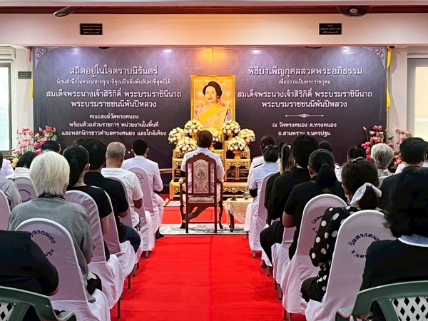 ฝ่ายปกครอง, และประชาชนตำบลทรงคนอง เข้าร่วมพิธีบำเพ็ญกุศล ในวาระครบรอบ 100 วัน(สตมวาร)เพื่อถวายเป็นพระราชกุศลแด่ สมเด็จพระนางเจ้าสิริกิติ์ พระบรมราชินีนาถ พระราชชนนีพันปีหลวง